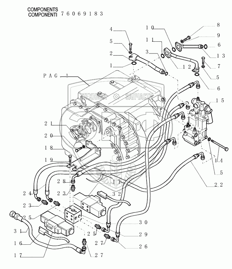 Каталог запасных частей к технике: New Holland Бульдозер D350. 1.211(12) TRANSMISSION PIPING