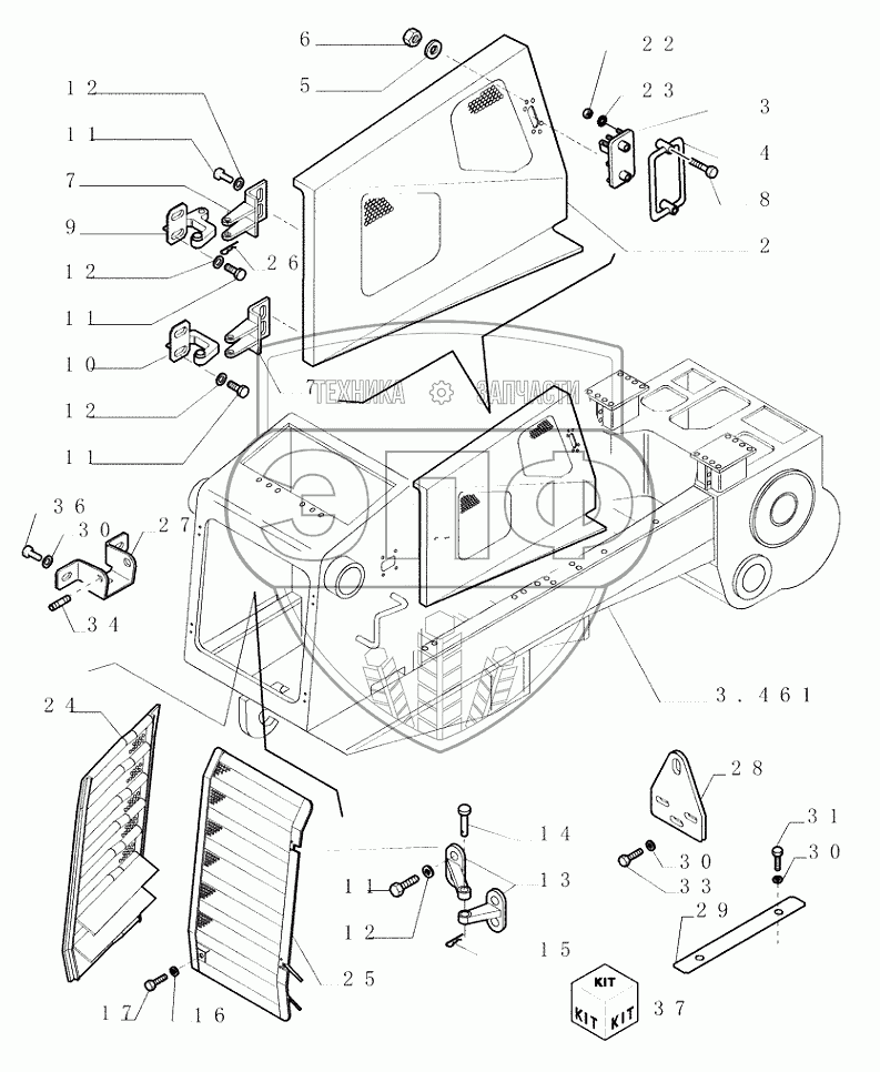 Каталог запасных частей к технике: New Holland Бульдозер D350. 5.601(01) HOODS