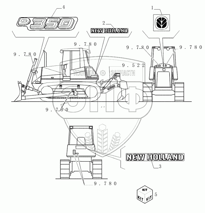 Каталог запасных частей к технике: New Holland Бульдозер D350. 6.782(01) TRADE MARK