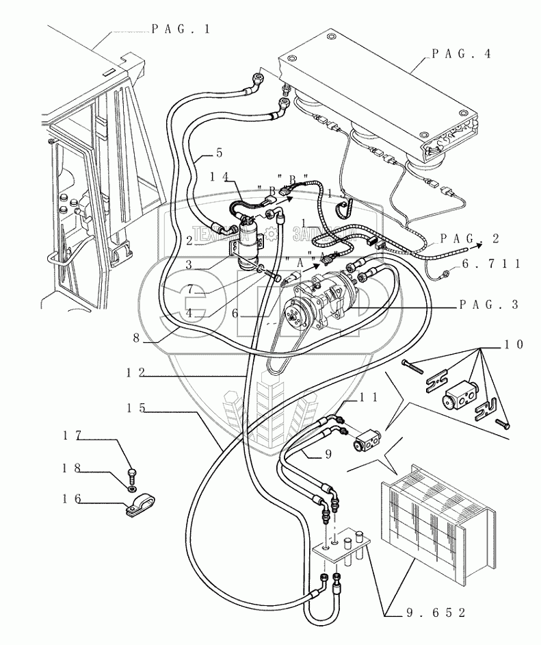 Каталог запасных частей к технике: New Holland Бульдозер D350. 9.653(05) ROPS CAB WITH CONDITIONER OPTIONAL CODE 76069252