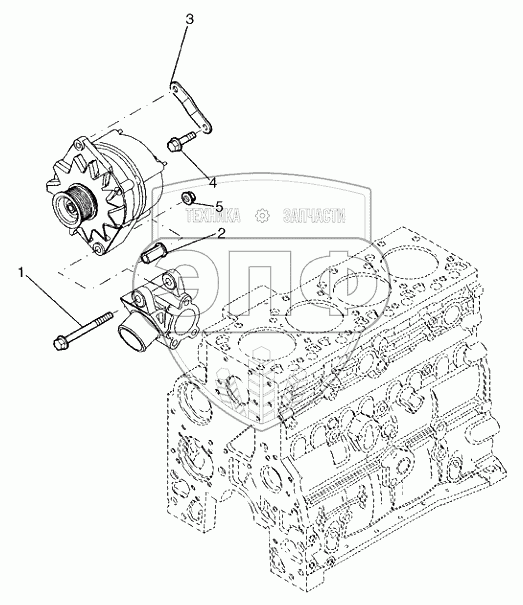 Каталог запасных частей к технике: New Holland Бульдозер D95B Tier 3. ALTERNATOR MOUNTING