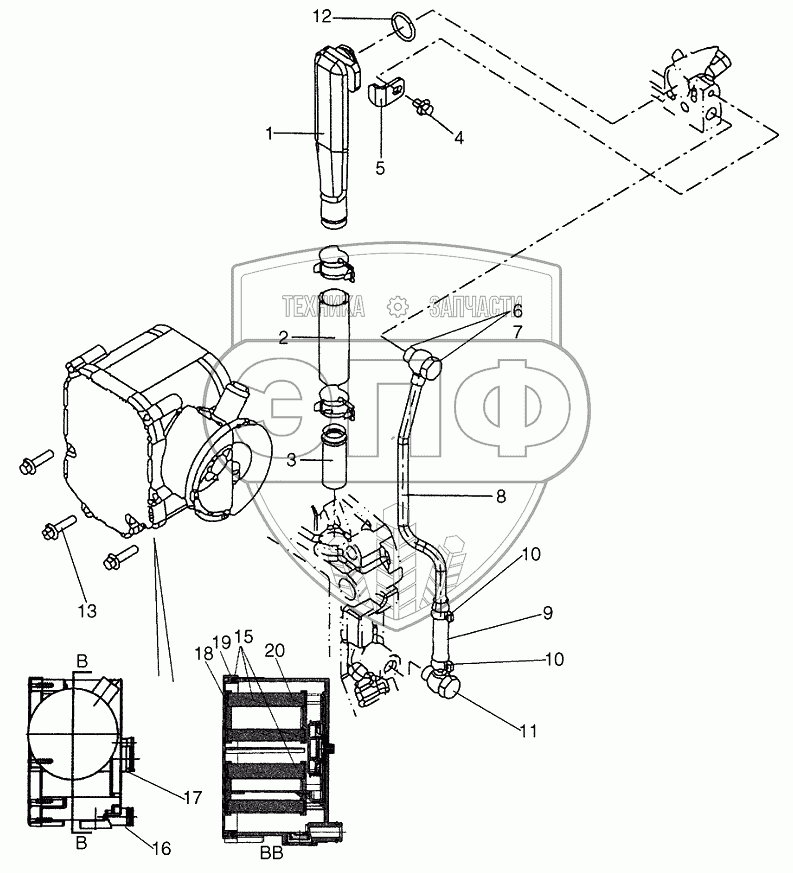 Каталог запасных частей к технике: New Holland Бульдозер D95B Tier 3. BREATHER ENGINE