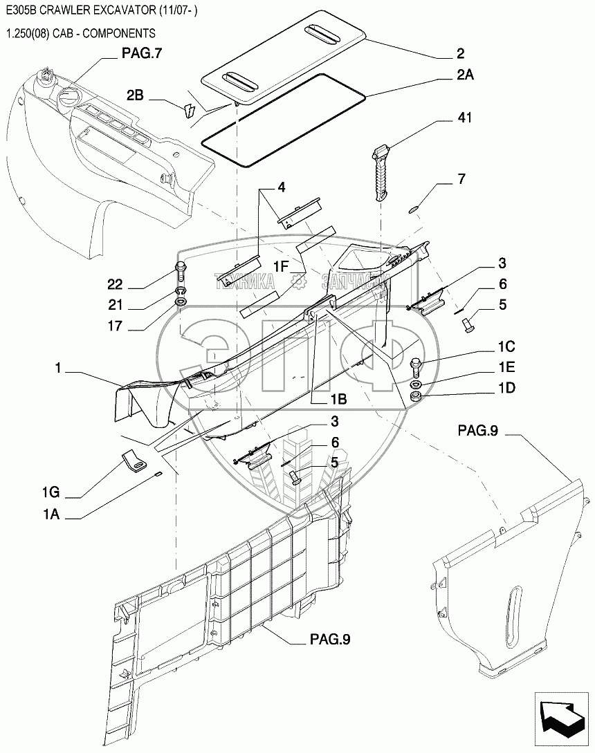 Каталог запасных частей к технике: New Holland Экскаватор E305B. Детали кабины
