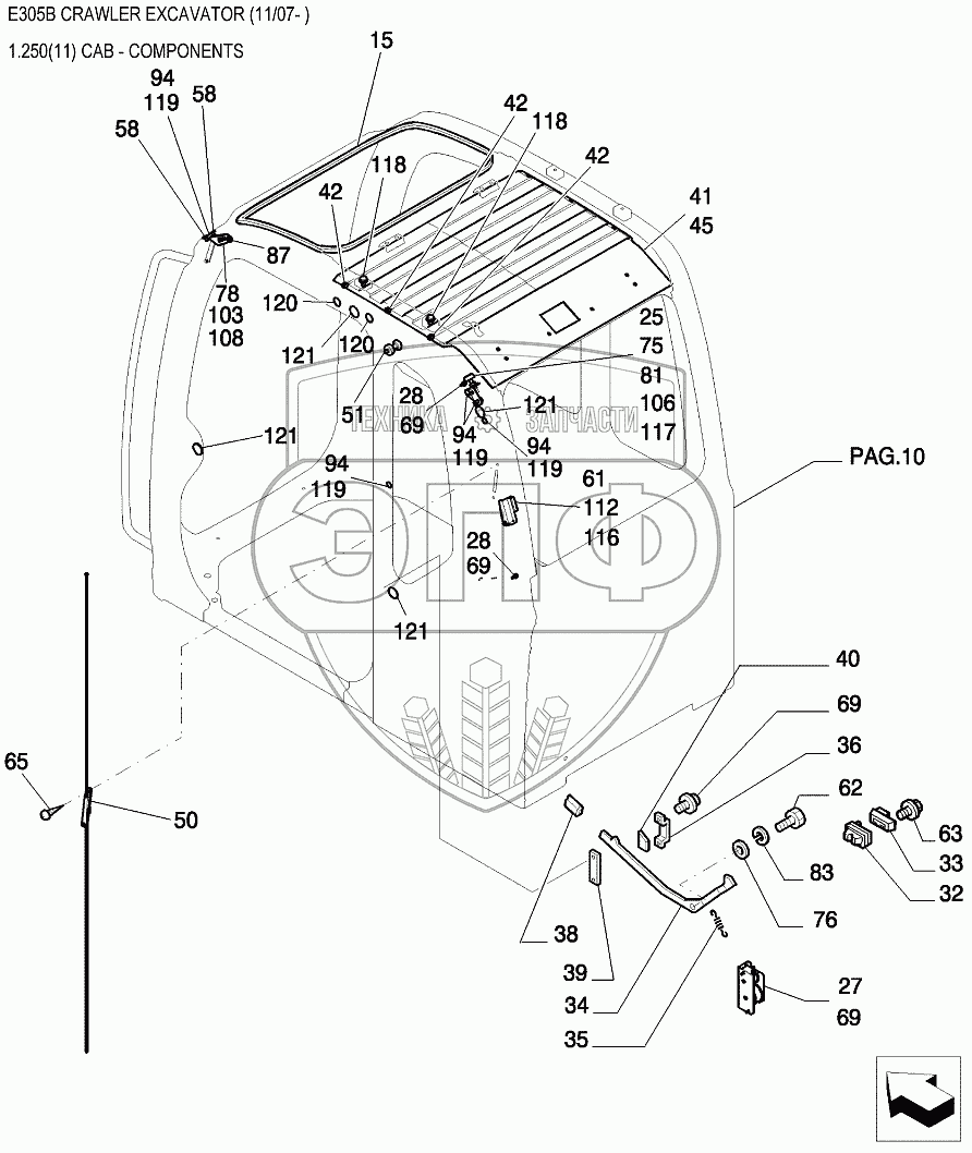 Каталог запасных частей к технике: New Holland Экскаватор E305B. Детали кабины