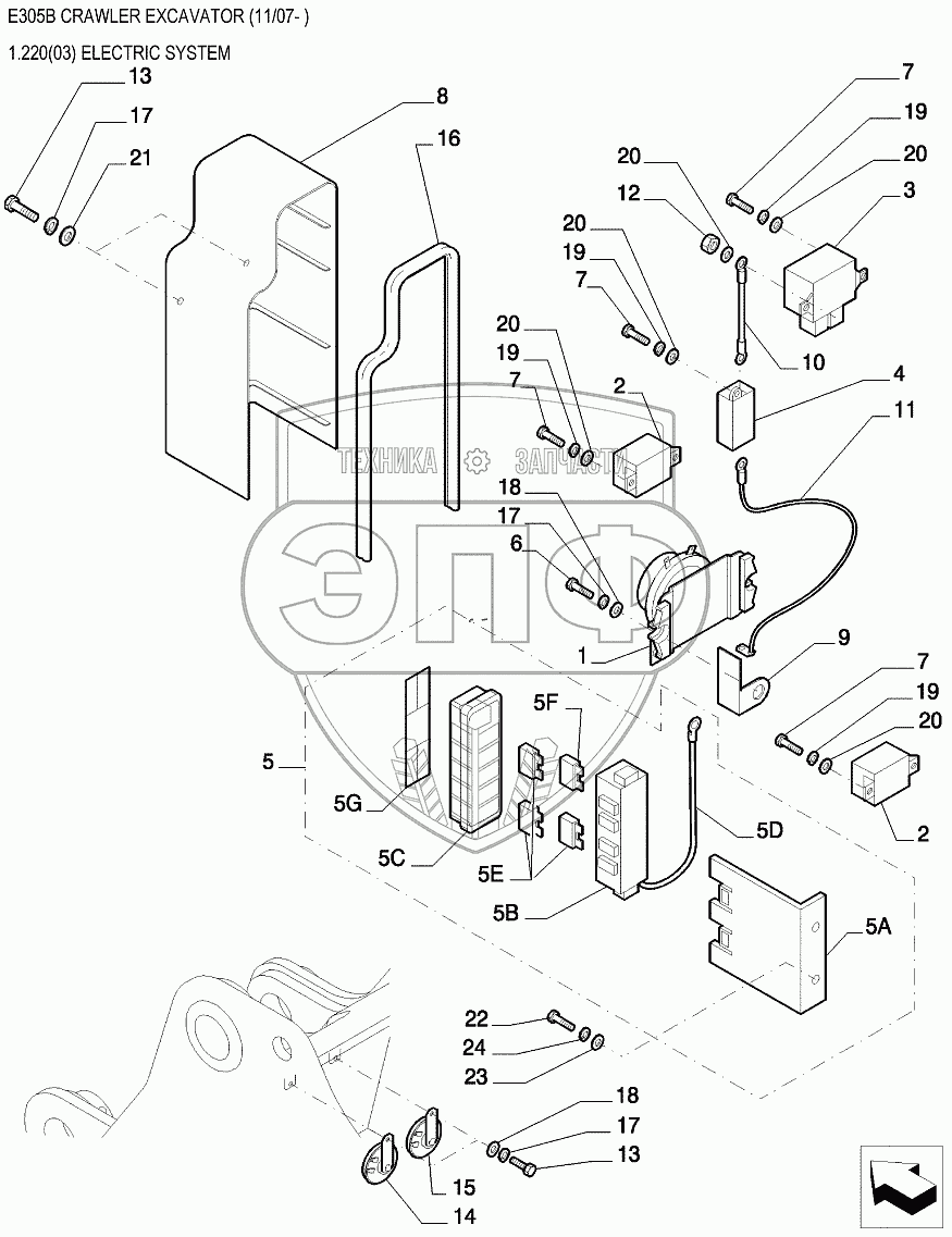 Каталог запасных частей к технике: New Holland Экскаватор E305B. Электрооборудование