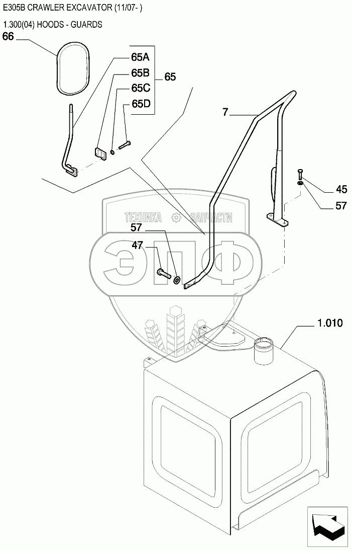 Каталог запасных частей к технике: New Holland Экскаватор E305B. Элементы облицовочные