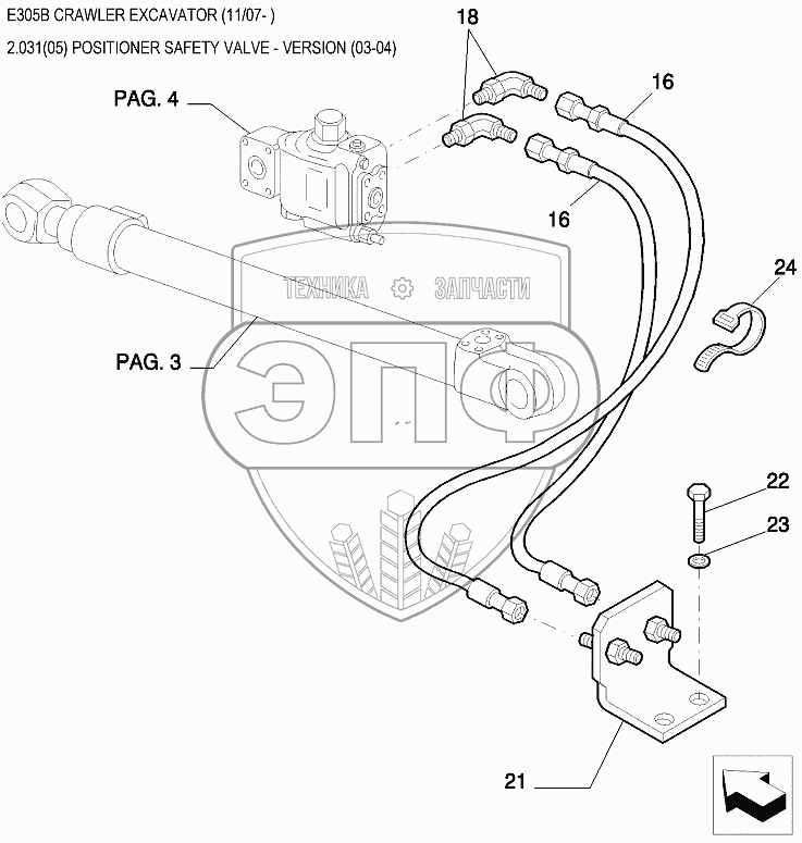Каталог запасных частей к технике: New Holland Экскаватор E305B. Клапан