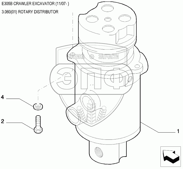 Каталог запасных частей к технике: New Holland Экскаватор E305B. Коллектор центральный