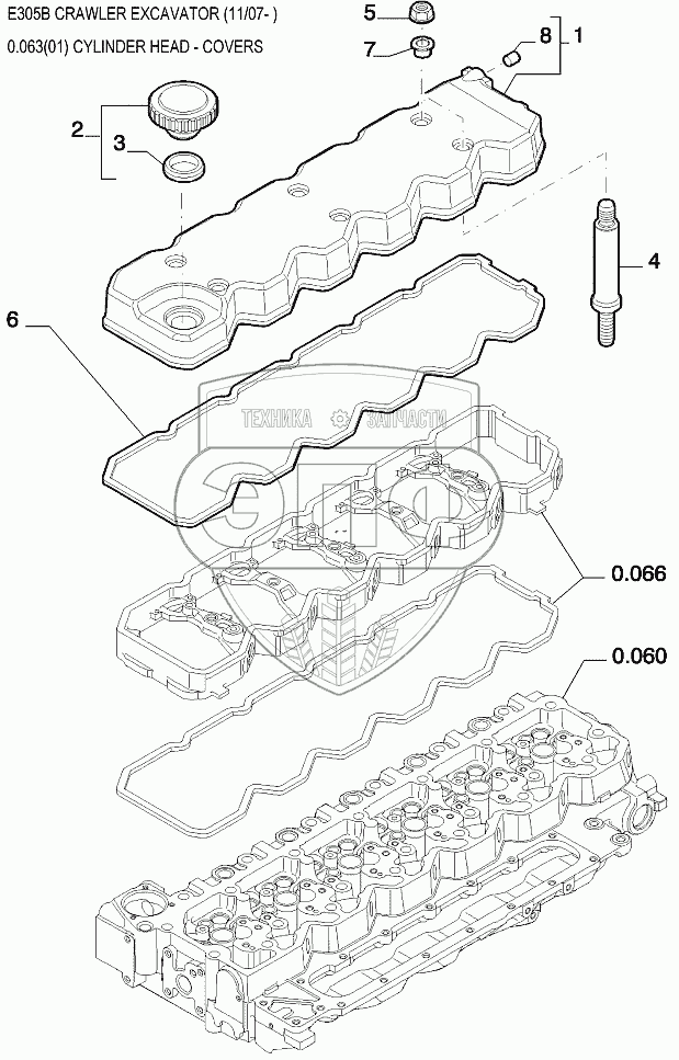 Каталог запасных частей к технике: New Holland Экскаватор E305B. Крышки головки цилиндров