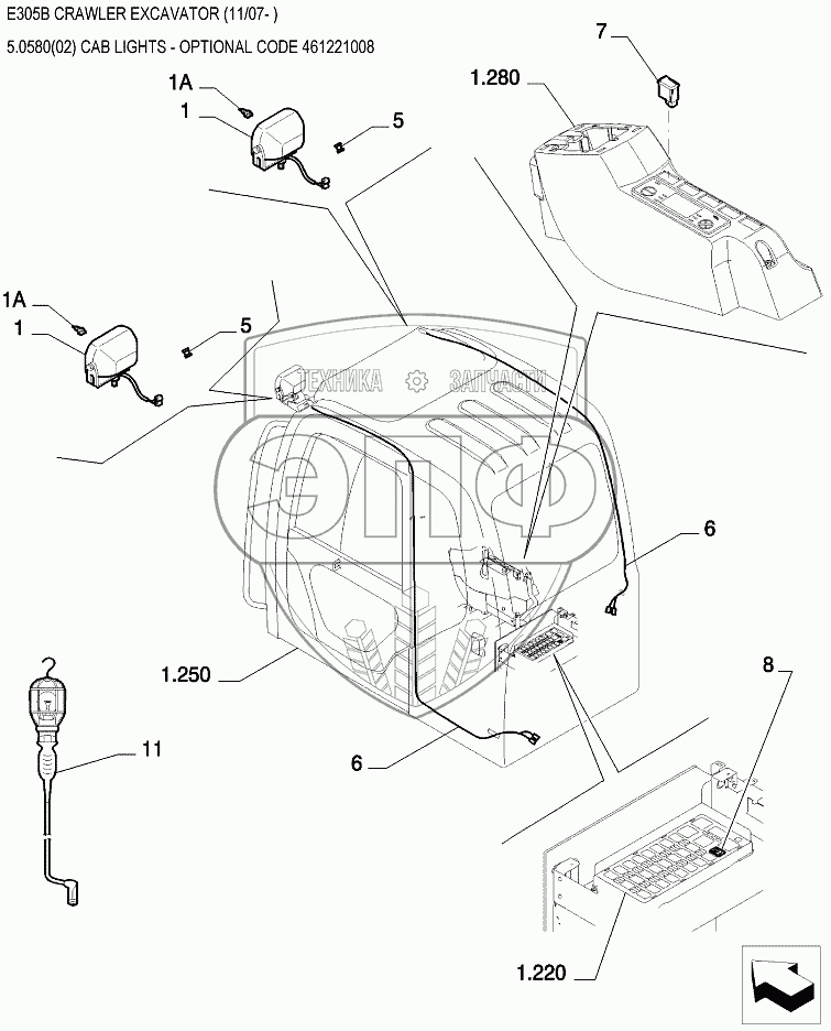 Каталог запасных частей к технике: New Holland Экскаватор E305B. Освещение