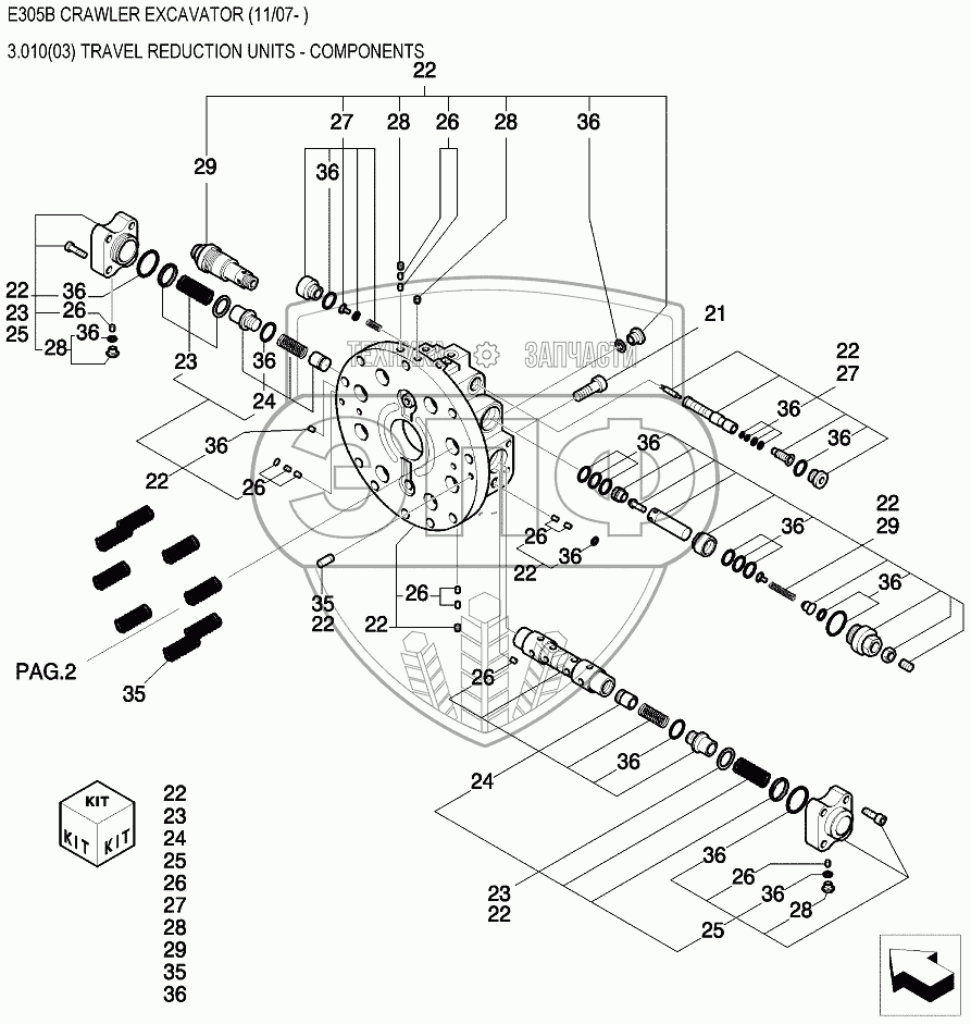 Каталог запасных частей к технике: New Holland Экскаватор E305B. Привод хода