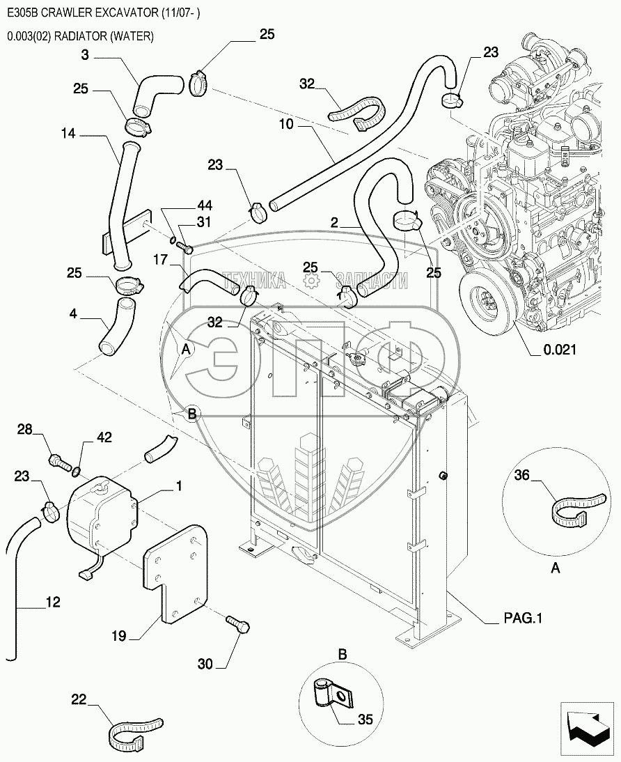 Каталог запасных частей к технике: New Holland Экскаватор E305B. Радиатор