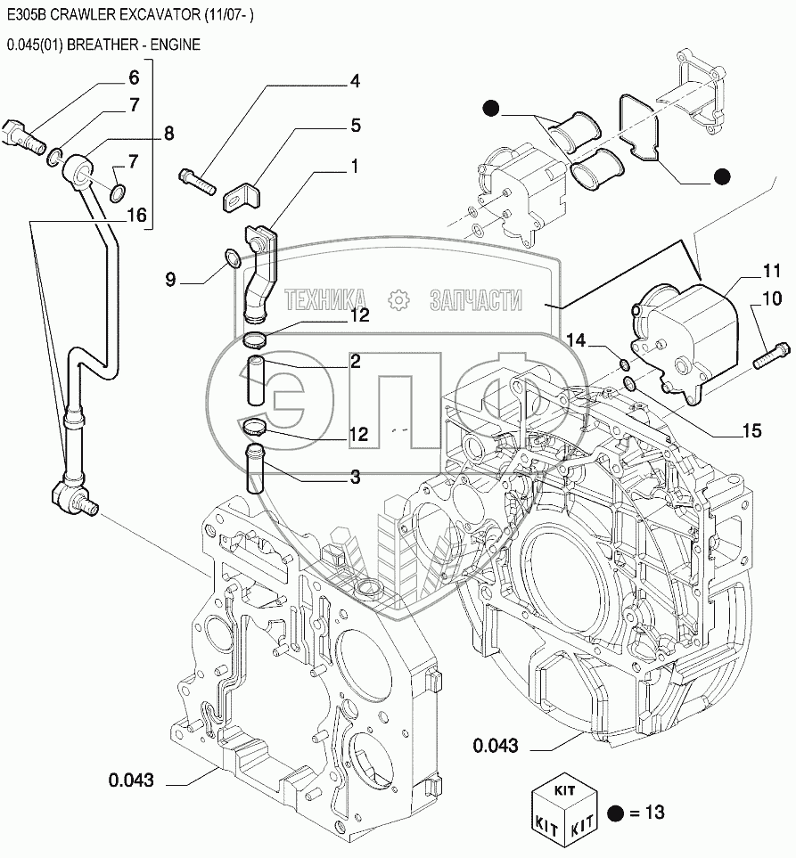 Каталог запасных частей к технике: New Holland Экскаватор E305B. Сапун