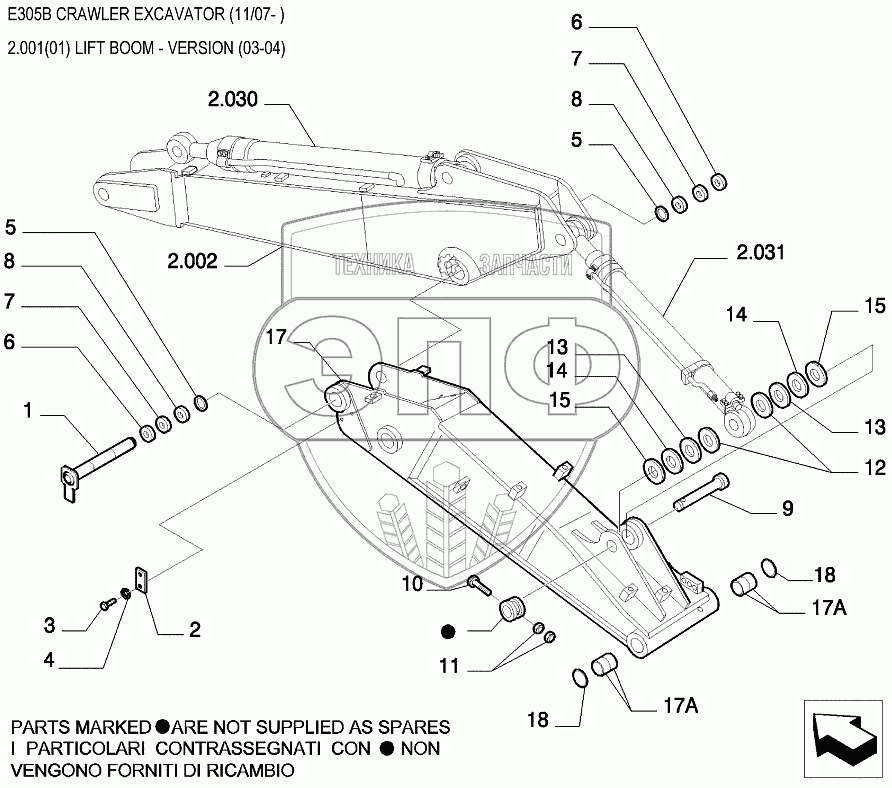 Каталог запасных частей к технике: New Holland Экскаватор E305B. Стрела