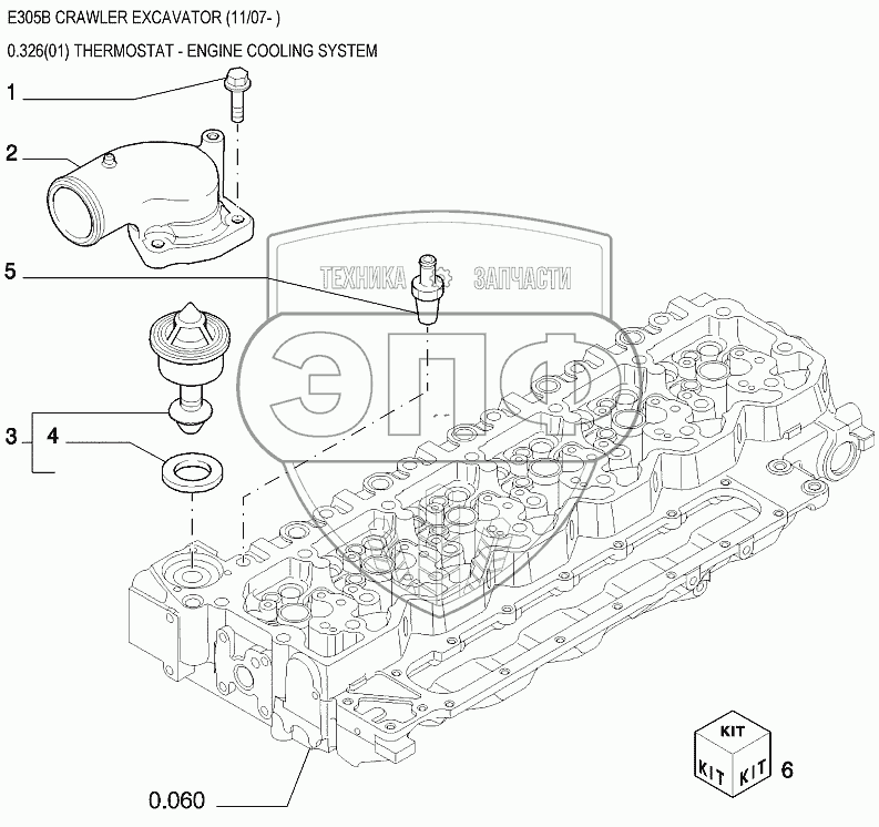 Каталог запасных частей к технике: New Holland Экскаватор E305B. Термостат