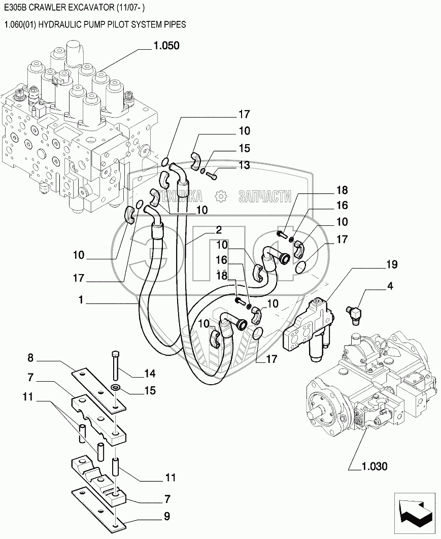 Каталог запасных частей к технике: New Holland Экскаватор E305B. Трубопроводы