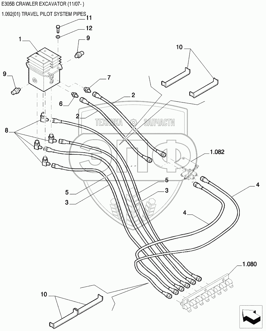 Каталог запасных частей к технике: New Holland Экскаватор E305B. Трубопроводы управления