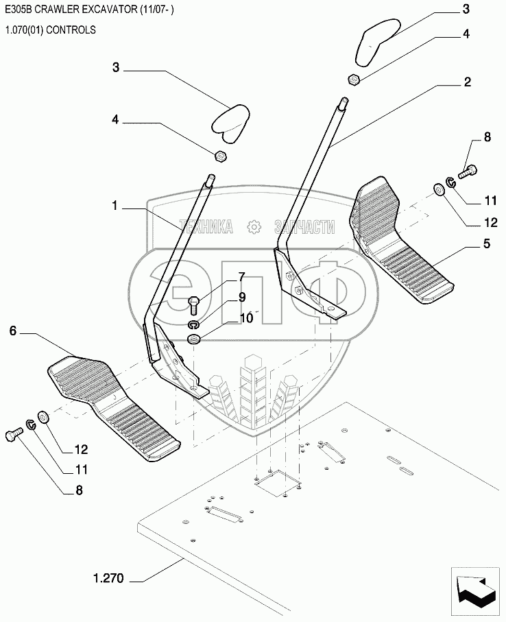 Каталог запасных частей к технике: New Holland Экскаватор E305B. Управление