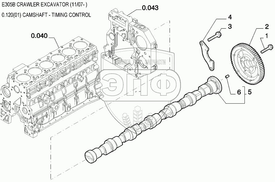 Каталог запасных частей к технике: New Holland Экскаватор E305B. Вал распределительный