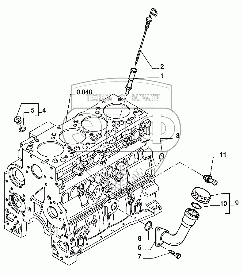 Каталог запасных частей к технике: New Holland Экскаватор LB110B (часть 1). Двигатель масляный