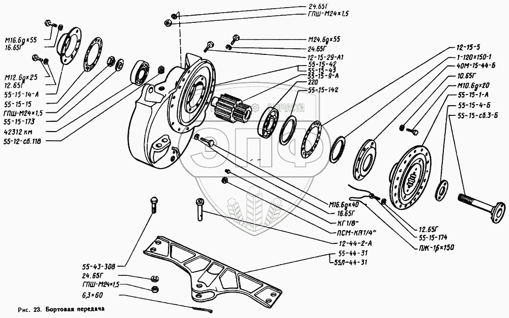 Каталог запасных частей к технике: Онежец ТДТ-55А. Бортовая передача