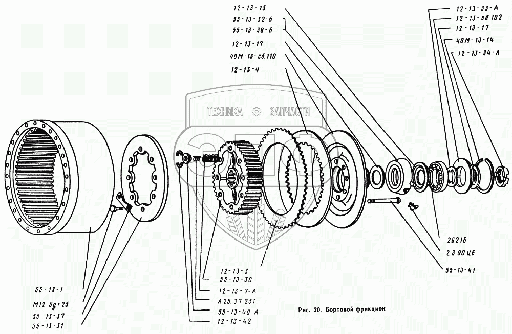 Каталог запасных частей к технике: Онежец ТДТ-55А. Бортовой фрикцион