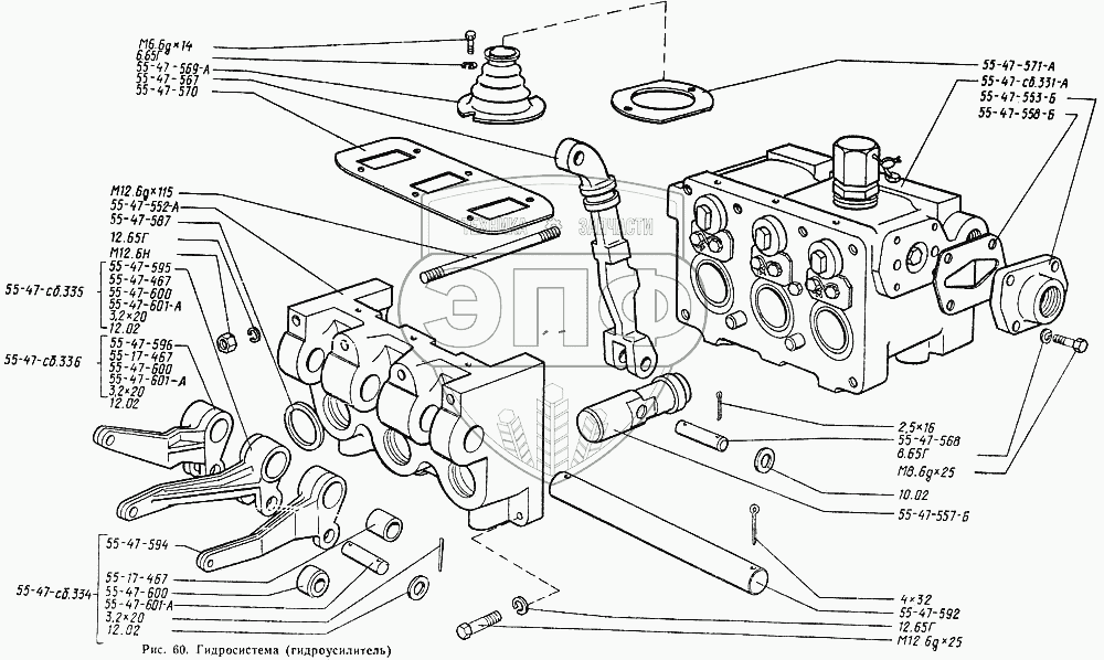 Каталог запасных частей к технике: Онежец ТДТ-55А. Гидроусилитель