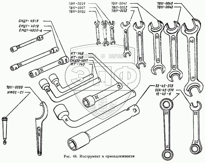 Каталог запасных частей к технике: Онежец ТДТ-55А. Инструмент и принадлежности
