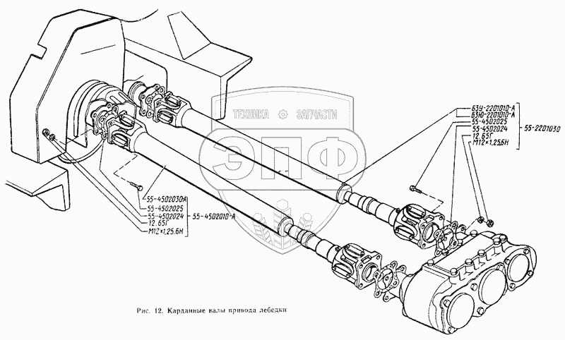 Каталог запасных частей к технике: Онежец ТДТ-55А. Карданные валы привода лебедки