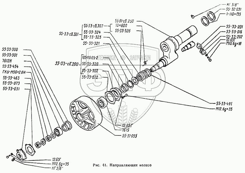 Каталог запасных частей к технике: Онежец ТДТ-55А. Направляющее колесо