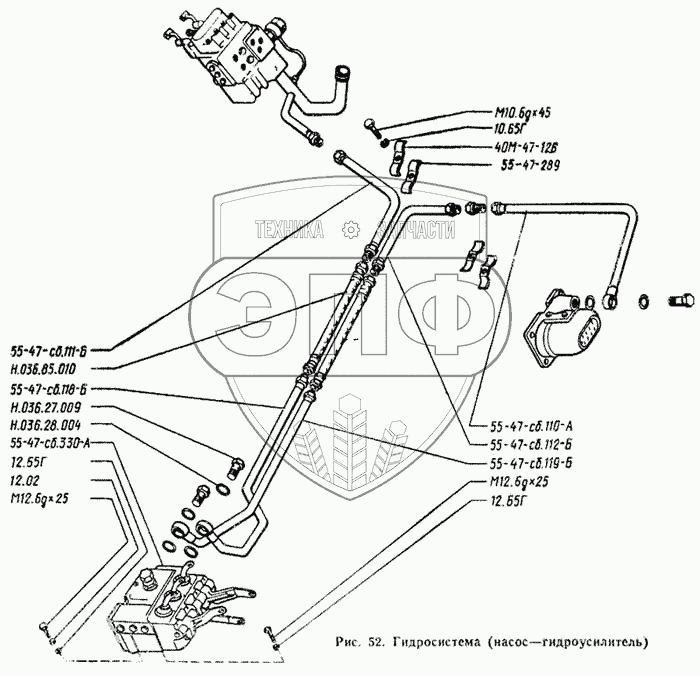 Каталог запасных частей к технике: Онежец ТДТ-55А. Насос, гидроусилитель