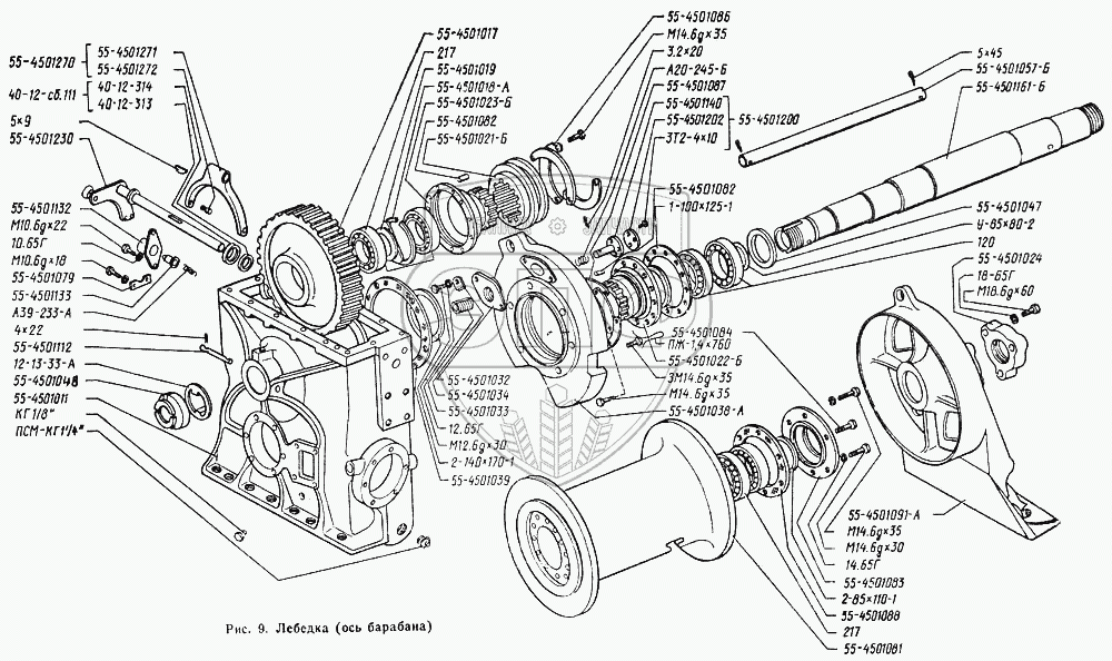 Каталог запасных частей к технике: Онежец ТДТ-55А. Ось барабана