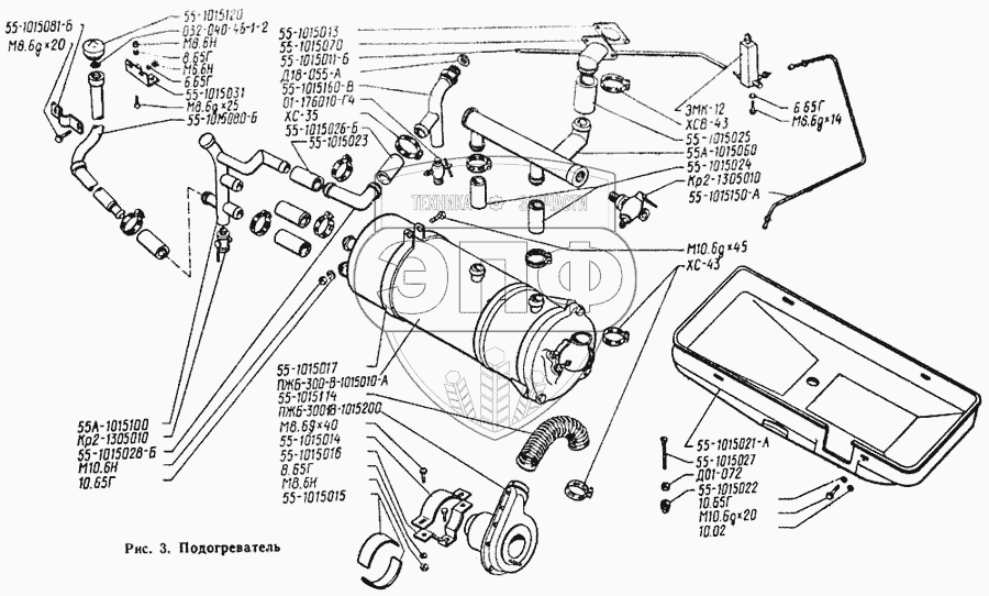 Каталог запасных частей к технике: Онежец ТДТ-55А. Подогреватель