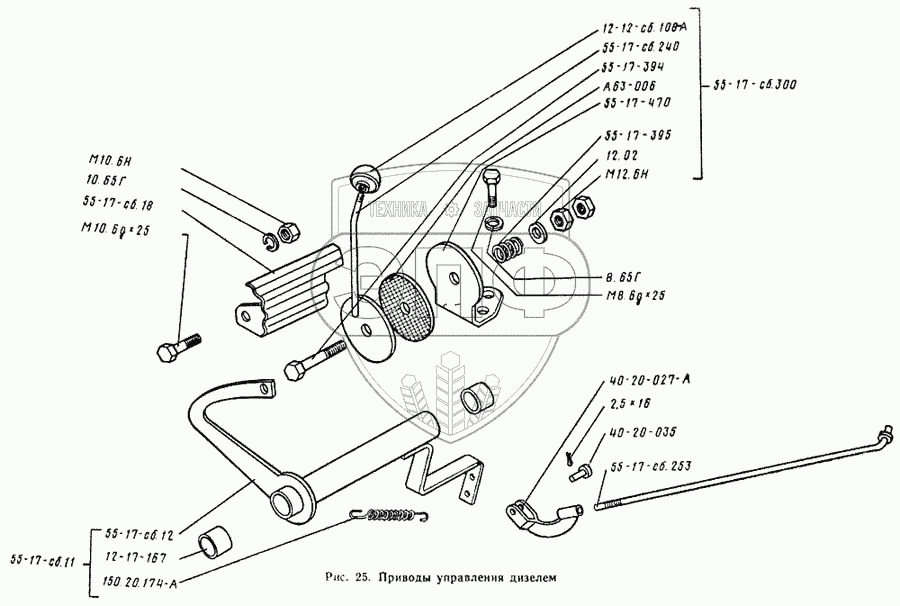 Каталог запасных частей к технике: Онежец ТДТ-55А. Приводы управления дизелем