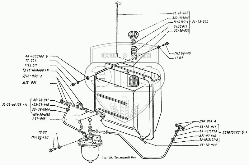 Каталог запасных частей к технике: Онежец ТДТ-55А. Топливный бак