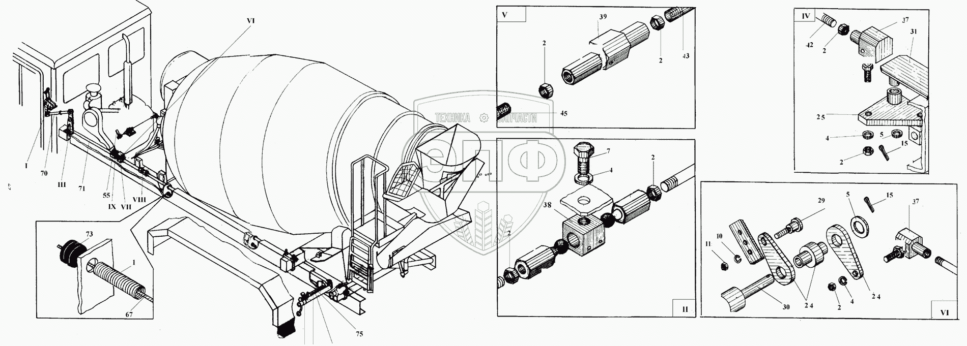 Каталог запасных частей к технике: ПАО "ТЗА" Автобетоноcмеситель 58140В. Органы управления