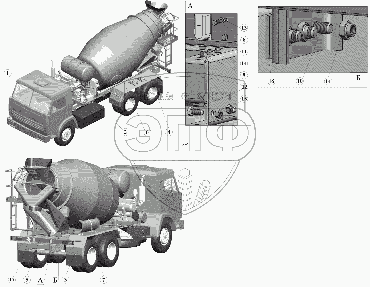 Каталог запасных частей к технике: ПАО "ТЗА" Автобетоносмеситель 58147С. Автобетоносмеситель