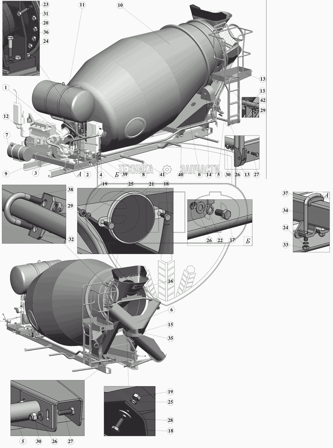 Каталог запасных частей к технике: ПАО "ТЗА" Автобетоносмеситель 58147С. Бетоносмеситель