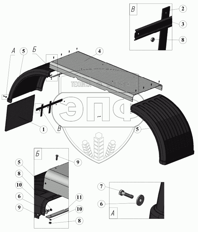 Каталог запасных частей к технике: ПАО "ТЗА" Автобетоносмеситель 58149Z. Крыло левое 670