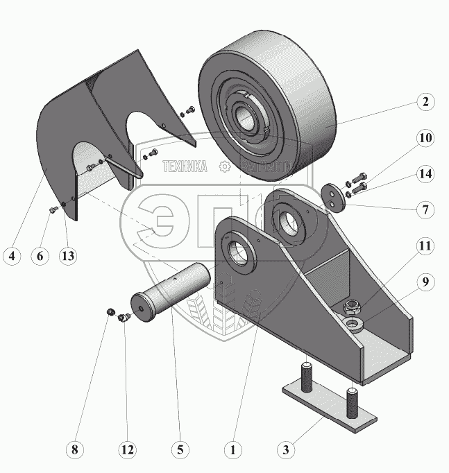 Каталог запасных частей к технике: ПАО "ТЗА" Автобетоносмеситель 58149Z. Ролик в сборе