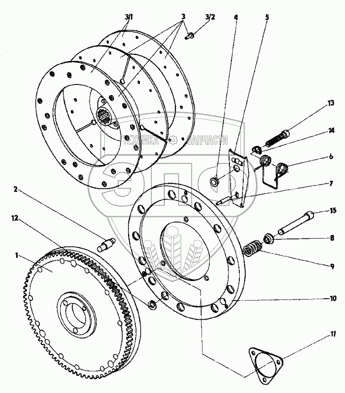 Каталог запасных частей к технике: ППС Детва УНС-060. Маховик со сцеплением