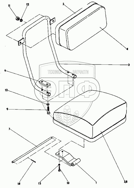 Каталог запасных частей к технике: ППС Детва УНС-060. Сидение