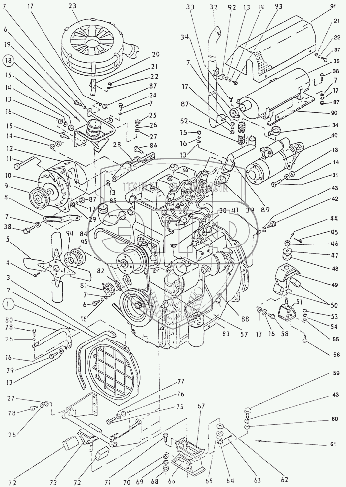 Каталог запасных частей к технике: ППС Детва УНС-061. Двигатель с принадлежностями