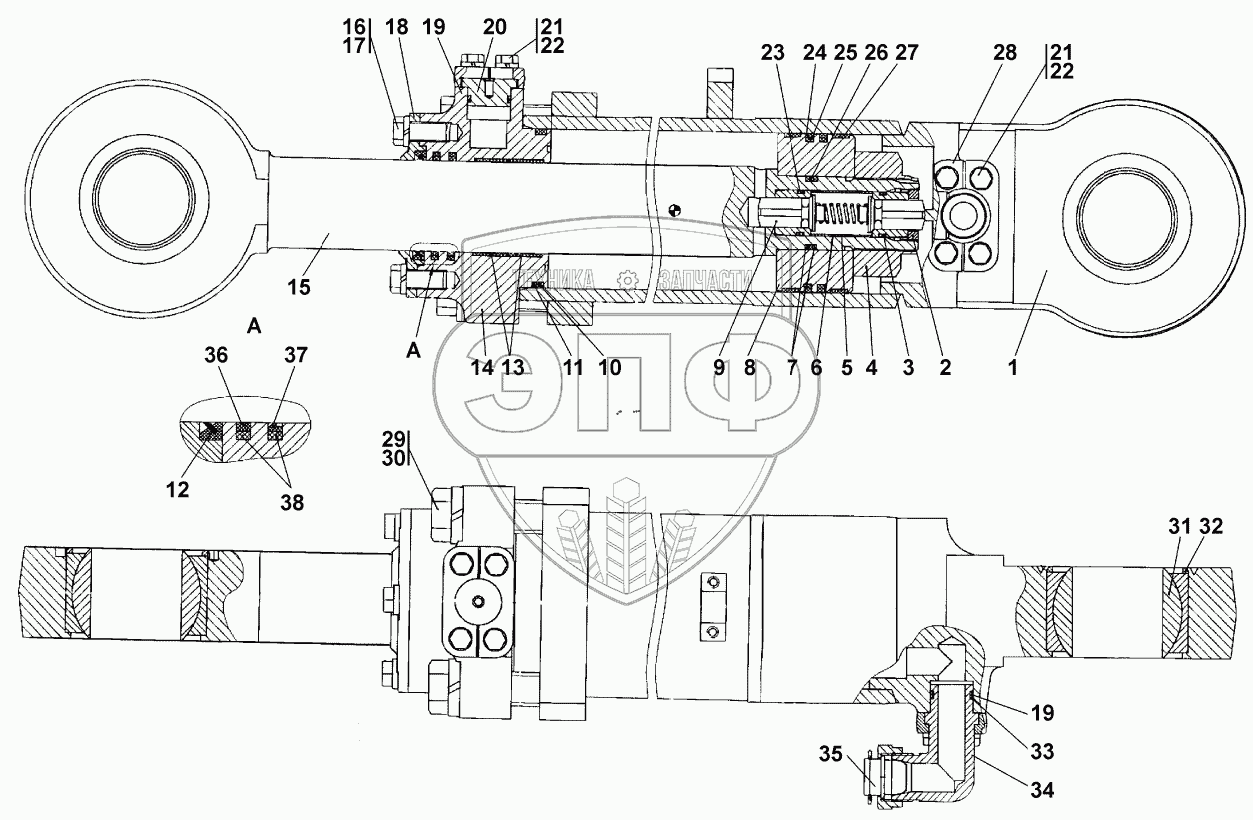 Каталог запасных частей к технике: Промтрактор ПК-12.02К. Гидроцилиндр