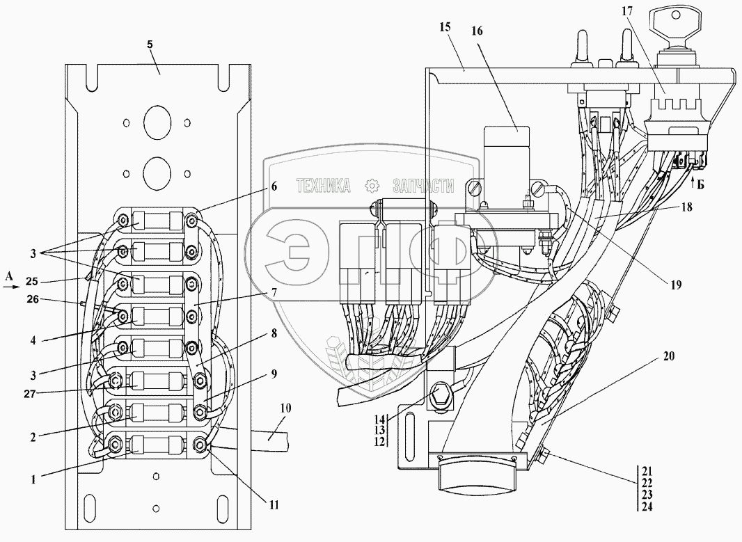 Каталог запасных частей к технике: Промтрактор Шасси ТП-20.02. Блок выключателей
