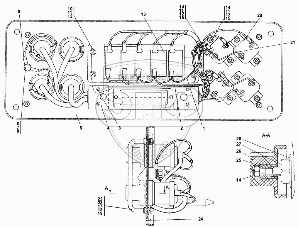 Каталог запасных частей к технике: Промтрактор Шасси ТП-20.02. Блок выключателей