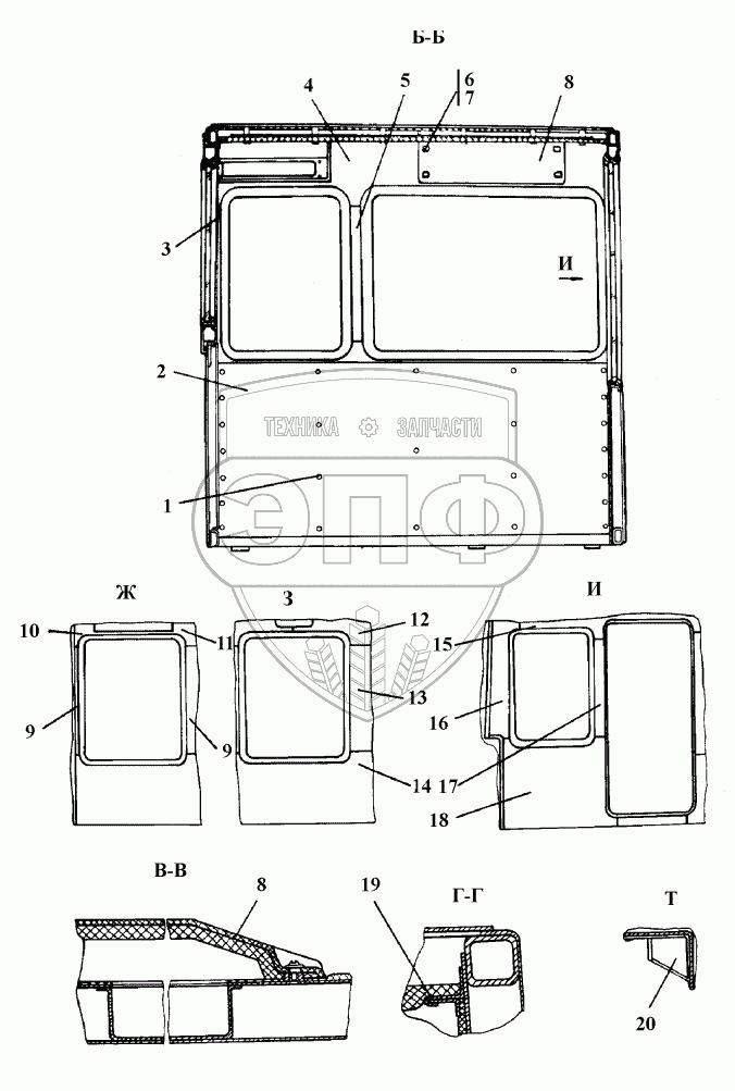 Каталог запасных частей к технике: Промтрактор Шасси ТП-20.02. Облицовка кабины