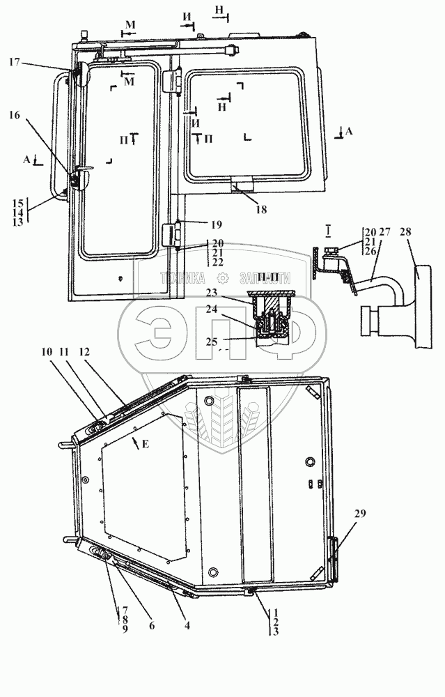 Каталог запасных частей к технике: Промтрактор Т-15.01Я. 2501-59-1СП Кабина