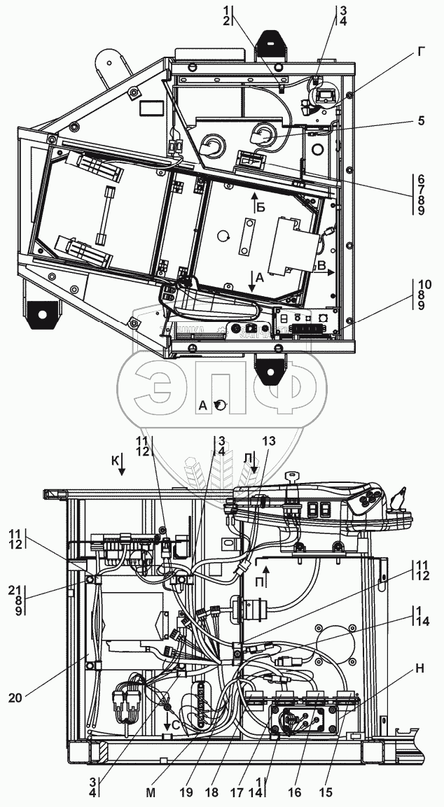 Каталог запасных частей к технике: Промтрактор Т-15.02K. Электрооборудование пола кабины