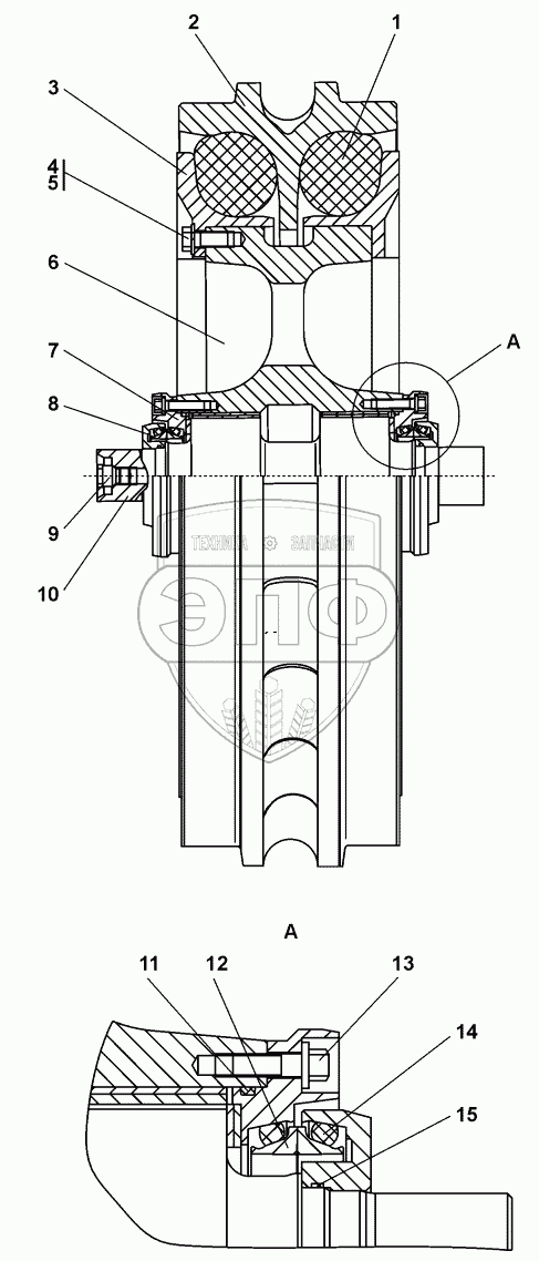 Каталог запасных частей к технике: Промтрактор Т-15.02K. Колесо натяжное